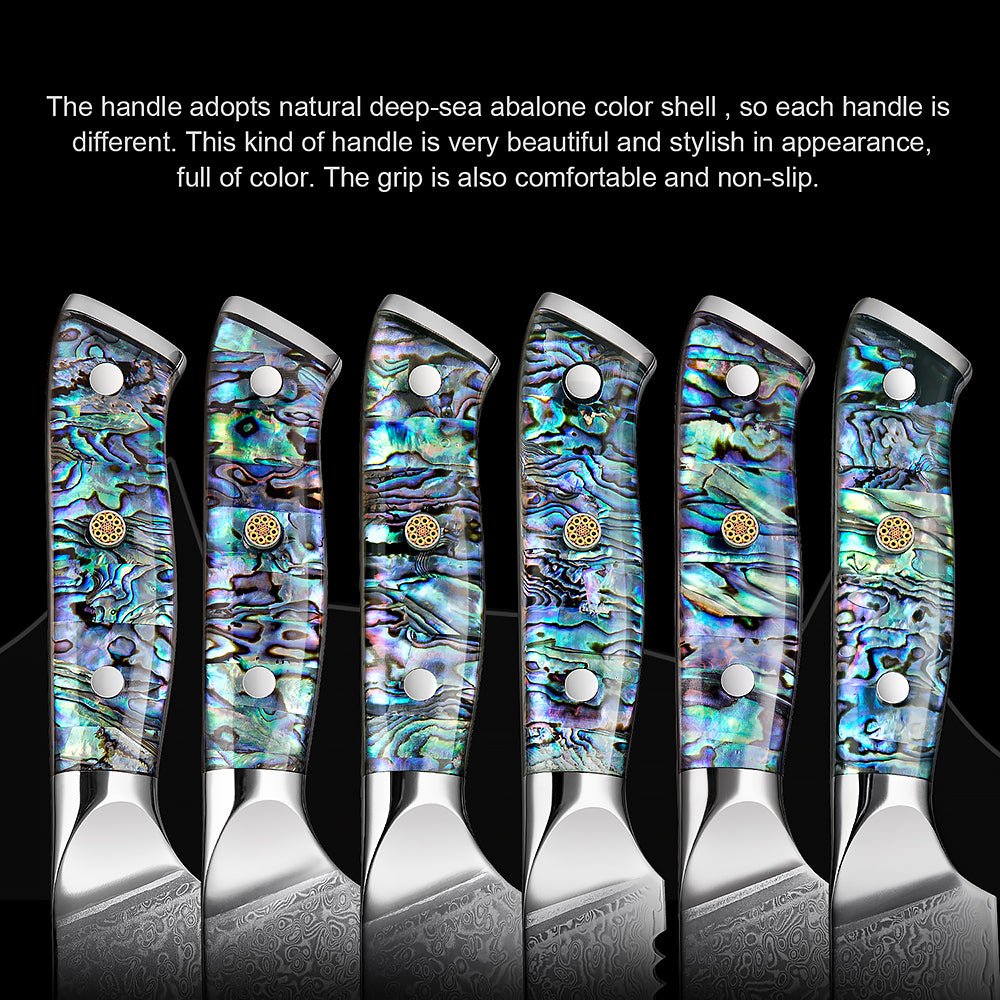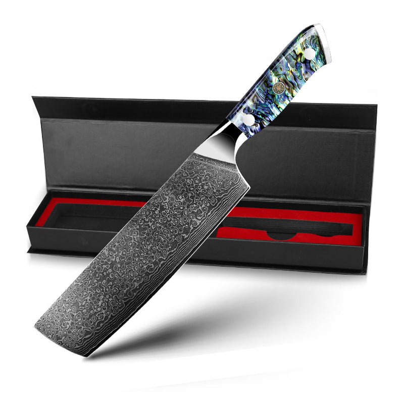 Couteau de chef Nakiri de 7 pouces, lame en damas et manche en coquille d'abalone